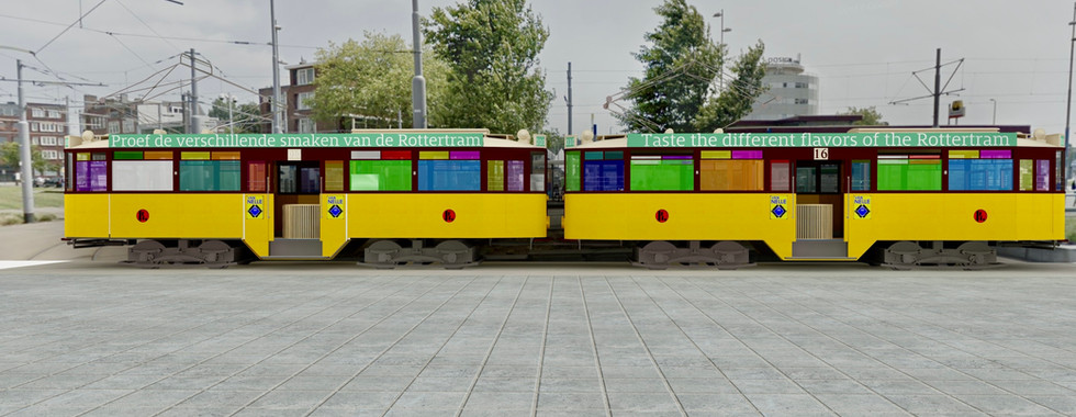 Dit gebeurt in de vorm van een Tram. Deze tram komt in alle gebieden en je kan erin eten. Het speciale aan deze tram zijn de kleuren. De kleuren staan namelijk voor de nationaliteiten. Als je de gekleurde ramen openschuift meng je nieuwe kleuren en dus nieuwe nationaliteiten. In de tram kan je internationale gerechten bestellen om nieuwe culturen (die het meest vertegenwoordigd zijn in Rotterdam) te leren kennen.