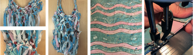 Het patroon heeft ook vrolijke kleurtjes dat het wel gebruikt kan worden bij een leuke dag op het strand. Als je langer naar het patroon kijkt zie je ineens dat er een dier in heel veel plastic rondzwemt.